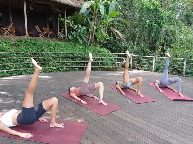 Lepas stres dengan yoga di alam terbuka! 🌿 Nikmati suara burung, udara segar, dan pemandangan sawah bertingkat. Rasakan keseimbangan jasmani dan rohani bersama energi alami yang menenangkan.